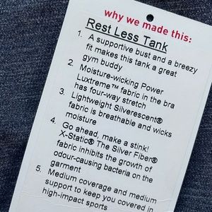 NEW Lululemon Rest Less Tank in Heathered Inkwell / Wee Are From Space October Inkwell / Inkwell Size 6. Hang tag is removed, rip tag is attached - never worn, tried on only.