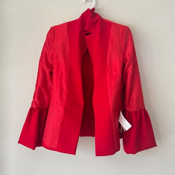 NEW MANGO from Paris Single-Breasted Flared Sleeve Red Blazer Jacket
