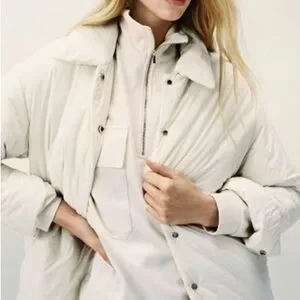 Two side pockets. Snap button closure. Quilted design. Classic collar. Water-repellent fabric. Snap button cuffs. Long sleeve. Inner lining