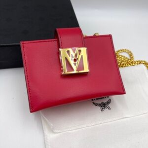 NEW MCM Mena cardholder leather wallet with chain bag in red full set