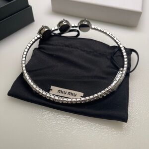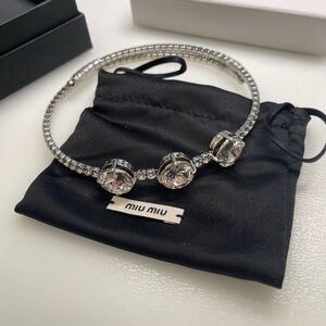NEW MIU MIU Necklace Choker Crystal Rhinestones Silver with box and dust bag