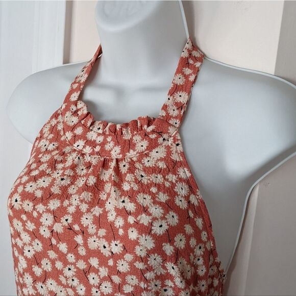 Gorgeous open back ditsy mini floral dress elastic waist halter top