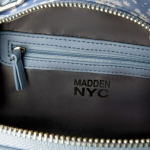 Brand new with tags Madden NYC Backpack in color blue. Spacious dome design to hold your essentials and plenty of pockets to help keep you organized. Outer front pocket, 2 pockets and zippered compartment inside. The removable zipper pouch/wallet is a handy way to stash small items when you are on the go and the chunky chain accent with charm adds a little bling to your look. Carry this versatile bag by the top handle or use the adjustable shoulder straps for hands-free convenience.