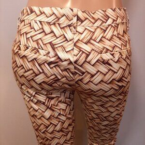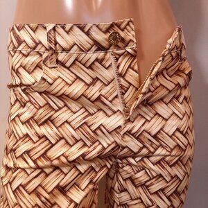 New with tags, cotton & spandex blend. Belt loops, zip fly, skinny silhouette, full length, tan & brown print.