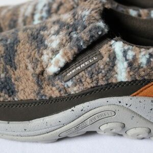 NEW (without tags), Merrell Beluga Jungle Moc Air Cushion slip on shoes - men's size 8, women's size 10 (EU 41.5). Made from 100% recycled material, 100% Sherpa/microfibre with a shock absorbing heel. Dual Density technology. Pre-owned but have never been worn and are new (purchased from Winners originally). Smoke-free, pet friendly home!
