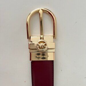 NEW Michael Kors Reversible Leather Burgundy & Monogram Belt, Buckle Logo-Unisex