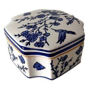 NEW Mikasa Chinoiserie Blue and White Porcelain Trinket Box- Large