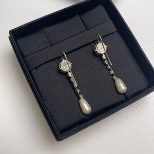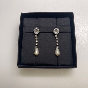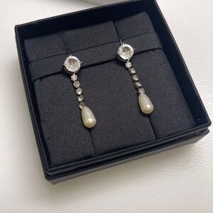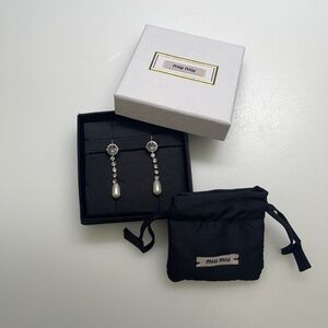 NEW Miu Miu Crystal & Faux Pearl Drop embellished Earrings silver white clear