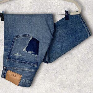 Moussy Vintage Louisville Tapered Jeans in Women's Size 26. 100% cotton. Label is 100% cowhide leather. Retails for $360 USD (approximately $501 CAD). Medium wash. Button fly. Heavy distressing. Made using water reducing washes, eco-friendly fabric, drying methods and vegetable tanning leather patch. Midweight denim. Imported from Japan. Machine washable. Brand new without tags! No flaws.