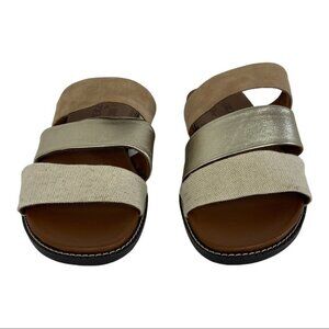 Naturalizer Kellie Slide Sandal in Natural Multi and Women's Size 6. Retails for $140 USD (approximately $195 CAD). Perfect from week to weekend, this transitional slip-on has endless opportunities. The Kellie is composed of leather/fabric, leather/synthetic, or leather upper with a round toe, and Contour technology, an innovative cushioning system anatomically sculpted to meet every contour of your foot for a premium fit and all-day comfort experience. It finishes with a smooth, breathable lining, and a non-slip outsole for stability.