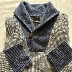 NEW. Never worn. JCrew 100% wool shawl collar sweater. Size Medium