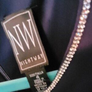 NEW Nightway Womens Navy Full Length Embellished Evening Dress Gown Sz 4