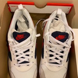 Nike Pegasus '92 Lite USA are white with navy blue, red and minimal gold accents.