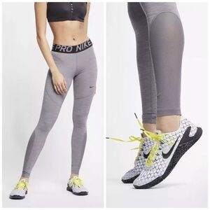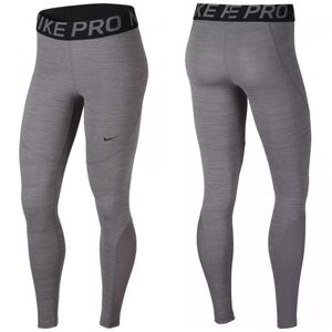 NWT NEW Nike Pro Women's Training Logo Tights Leggings in Grey Heather Sz ZL