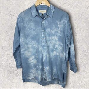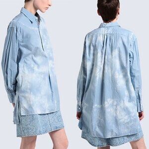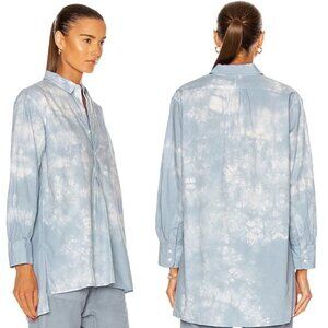 Nili Lotan Ambrose Tunic Top in Sky Blue and Women's Size Large. From Revolve. Oversized fit. 100% cotton. Plain weave, stained effect, two-tone, classic neckline, long sleeves and button closing. Side slit hemline. Retails for $506 USD (approximately $703 CAD). Made in the USA. Machine washable. Brand new without tags! No flaws.