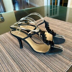 *NEW Nine West Black Satin Sandals with Ruffle on Top of Foot and Ankle Strap 10
