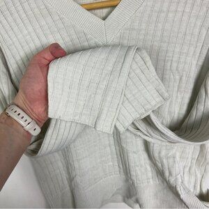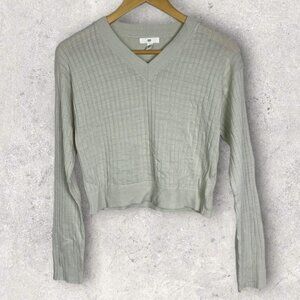 NEW Nordstorm BP Ribbed Crop Sweater Grey Size Large V-Neck Knit Made in USA L