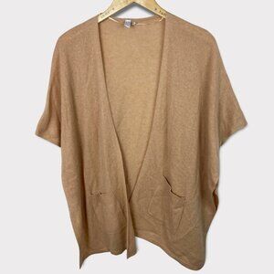 NEW Nordstrom 100% Cashmere Ruana Beige Tan Open Front Cardigan Pockets Minimal