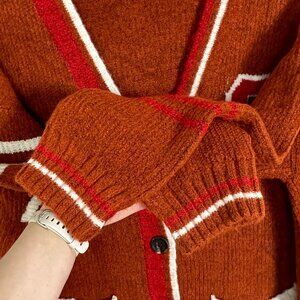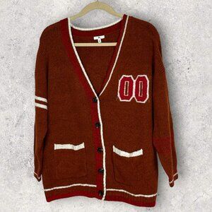 NEW Nordstrom 2022 Varsity Cardigan Rust Brown Oversized Chunky Knit Size Large