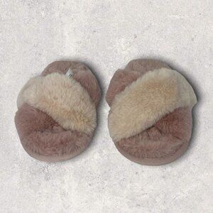 NEW Nordstrom Faux Fur Plush Slippers Pink Criss Cross Size Small Two Toned Shoe