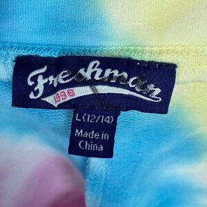Freshman Kid's Shorts in Spectrum Tie Dye and Size Large (fits 12/14). From Nordstrom. Retails for $30 USD (approximately $42 CAD). 58% cotton, 38% poly and 4% spandex. With a classic waist and comfy length, these soft, cotton-blend shorts are sure to be a high with your fashion-forward girl. New without tags. No flaws.