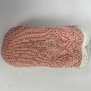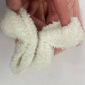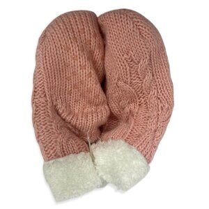 Little Girls Cable Knit Fleece Lined Mittens in Pink. Round hands with thumbs. Super soft fleece. Grip on the outside. About 8.5" length from tip to wrist. New without tags! From Nordstrom.