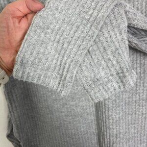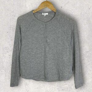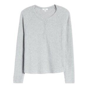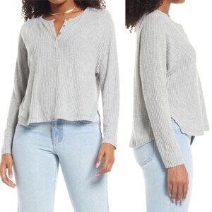 NEW Nordstrom Oversized Waffle Knit Snap Henley Long Sleeve Heather Grey Size XS
