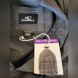 NEW- O'Neill Dark Gray and Light Gray Striped Hoodie, Size XXL