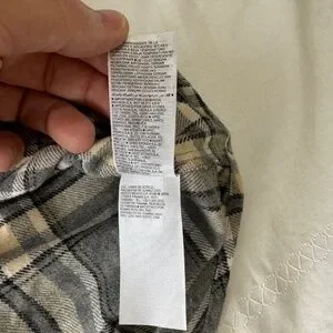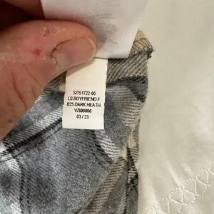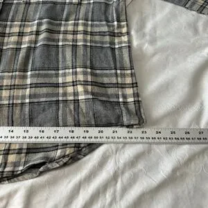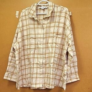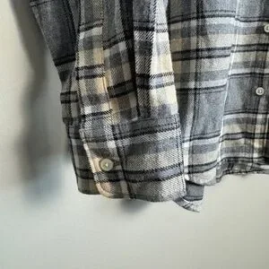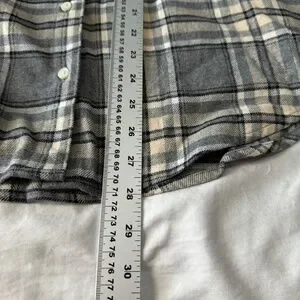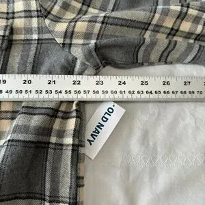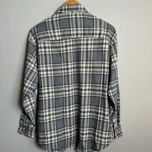 NEW Old Navy Women's Gray/Beige Plaid Boyfriend Button Up Shirt Medium Chore