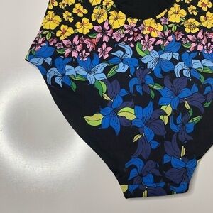 NEW Onia Rachel Floral Yellow Blue Pink Flower Black Stretchy One Piece Swimsuit
