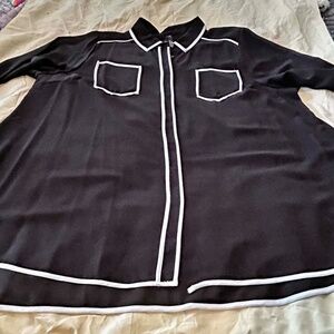 NEW PHOTOS! BLOUSE, LONG LENGTH, BLACK & WHITE, SIZE 4X, POCKETS, CUFFS WITH