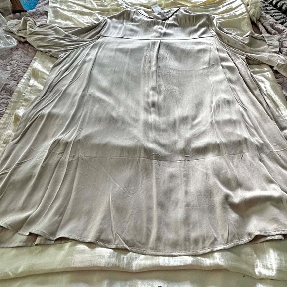 NEW PHOTOS! BLOUSE, STRETCH TWILL, COLOUR LINEN, SIZE 4X, BUTTON & TAB ¾ SLEEVE