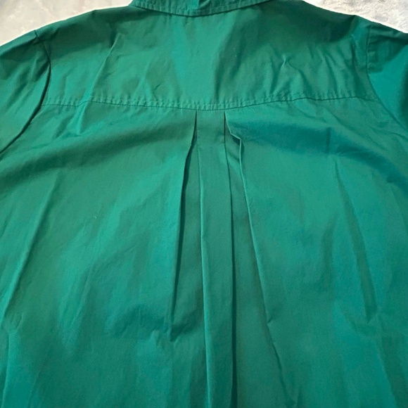 NEW PHOTOS! BOYFRIEND SHIRT, EVERGREEN, SIZE 2X, BUTTON FRONT, SCOOP POCKETS,