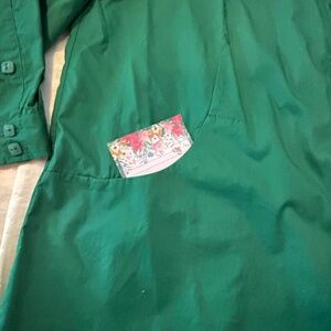 NEW PHOTOS! BOYFRIEND SHIRT, EVERGREEN, SIZE 2X, BUTTON FRONT, SCOOP POCKETS, LONG SLEEVES, JOAN RIVERS, IN ORIGINAL BAG, TAG ON, NEVER WORN