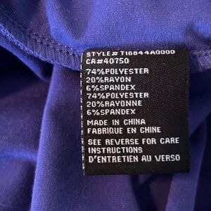 FABRIC: 74% Polyester 20% Rayon 6% Spandex