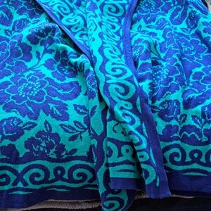 NEW PHOTOS! JACKET, BLANKET SWEATER, ROYAL BLUE/TEAL, SZ 3X, GRAPHIC FLORAL,