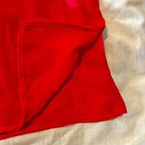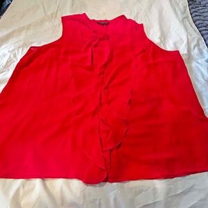 NEW PHOTOS! RUFFLE FRONT BLOUSE, SCARLET, SIZE 24, MANDARIN COLLAR, SLEEVELESS, POLYESTER, BUTTON FRONT, ADDITION ELLE, IN ORIGINAL BAG, NEVER WORN