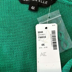 NEW PHOTOS! SLEEVELESS TOP, KELLY GREEN, SIZE 4X, COWL NECK, DELICATE WOVEN RAYON, LONG LENGTH, SIDE SLIT, RIBBED HEM, ADDITION ELLE, IN ORIGINAL BAG, TAG ON, NEVER WORN