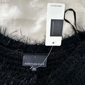 NEW PHOTOS! SOFT FUZZY SWEATER, BLACK, SIZE 4X, LONG SLEEVES, RIBBED CREW NECK, DROP SHOULDERS, ADDITION ELLE, IN ORIGINAL BAG, TAG ON, NEVER WORN