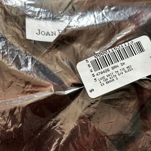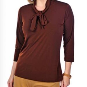NEW PHOTOS! TIE NECK TOP, BROWN, SIZE 3X, PULL OVER, 3/4 SLEEVES, SPANDEX KNIT, SEMI-FITTED, JOAN RIVERS, IN ORIGINAL BAG, TAGS ON, NEVER WORN