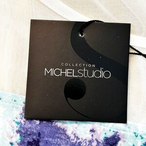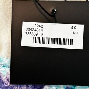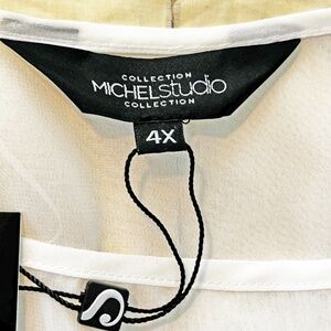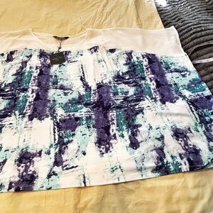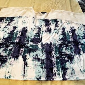 NEW PHOTOS! TOP, KIMONO STYLE, WINTER WHITE/DARK PURPLE, SIZE 4X, PRINTED, STRETCHY BODY, CREPE TOP, BATWING SIDES, CREW NECK, TWO SMALL MARKS WASHABLE, MICHEL STUDIO FOR ADDITION ELLE, IN ORIGINAL BAG, TAG ON, NEVER WORN