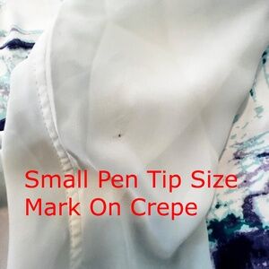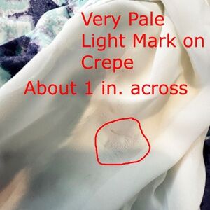 CONDITION: IN ORIGINAL BAG, TAG ON, NEVER WORN. Washable Small Pen Tip Size Dot and a few lines about 1 inch across on the Crepe. Kept in clean smoke free home.