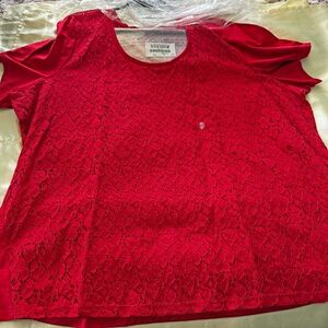 NEW PHOTOS! TOP, LACE FRONT, TANGO RED, SZ 5X, SCOOP NECK, SHAPED FIT, 30 INCHES