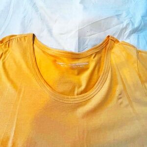 NEW PHOTOS! T-SHIRT, GOLD, SIZE 4X, SHORT SLEEVES, SIDE SPLITS, SCOOP NECK, LONG