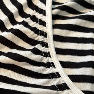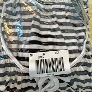 NEW PHOTOS! T-SHIRT, STRIPED, BLACK & WHITE, SIZE 4X, SCOOP NECK, CAP SLEEVES WITH ELASTIC HEMS, SHIRRED NECK, ELASTIC BOTTOM HEM, ADDITION ELLE, IN ORIGINAL BAG, TAGS ON, NEVER WORN
