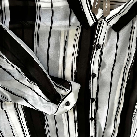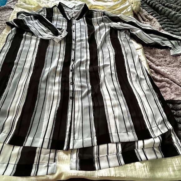 NEW PHOTOS! TUNIC, BLACK & WHITE VERTICAL STRIPES, SIZE 4X, LONG SLEEVES, SHIRT