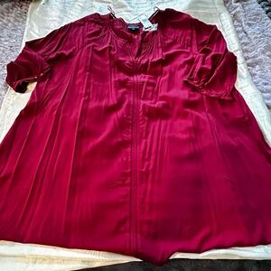 NEW PHOTOS! TUNIC, ¾ SLEEVES, SANGRIA, SIZE 24, RAYON SPANDEX, SCOOP NECK,