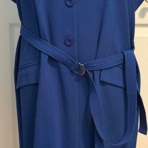 NEW PHOTOS! VEST, BLUE SURF, SIZE 24, QUICK DRY NO IRON CRIMPLENE POLYESTER ELASTANE, 2 POCKETS, BELT, BUTTON FRONT, LONG LENGTH, SIDE SLITS, MICHEL STUDIO for ADDITION ELLE, IN ORIGINAL BAG, TAG ON, NEVER WORN