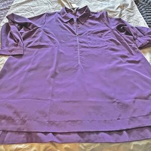 NEW PHOTOS! ZIP FRONT BLOUSE, CRUSHED GRAPE, SIZE 4X, WRINKLE FREE NO IRON, LONG