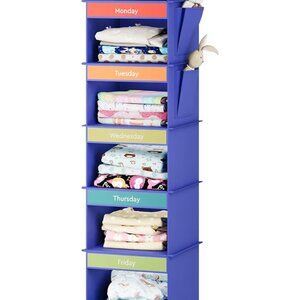 6-Shelf Weekly Hanging Closet Organizer, Weekly Clothes Organizers for Kids with 2 Side Pockets